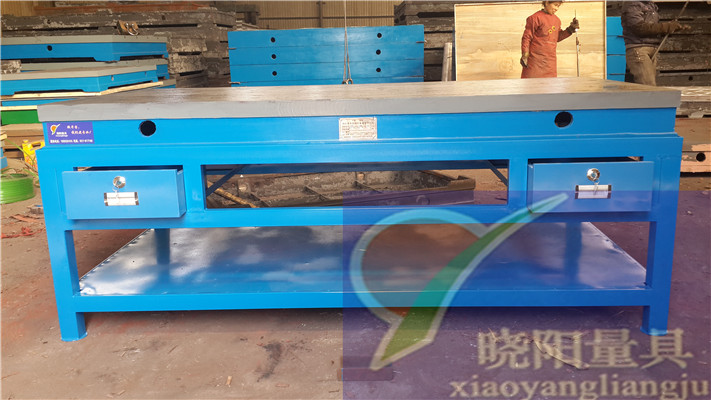 在使用铸铁钳工工作台时要先进行安装调试,将铸铁钳工工作台支承点垫好、垫平,保证每个支撑点受力均匀,保证整个铸铁钳工工作台平稳;